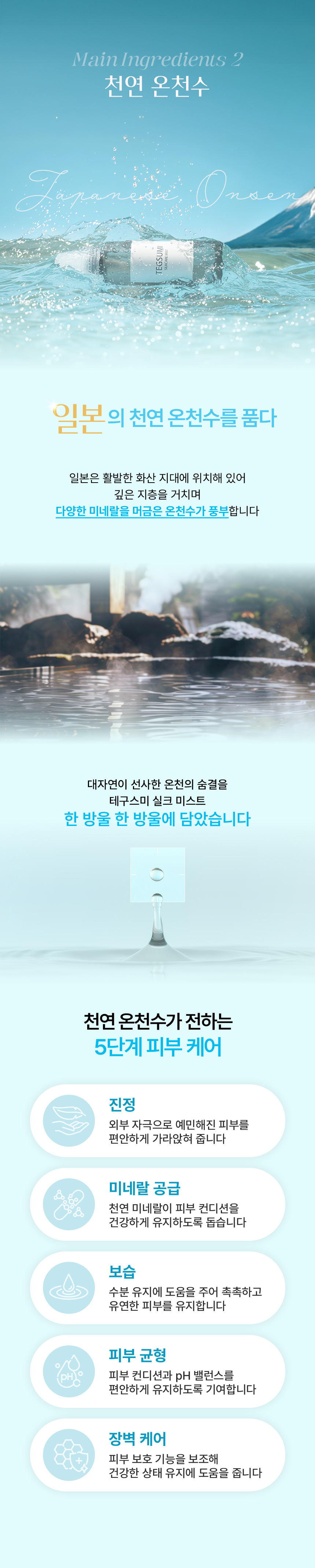 피부 보습막을 철저히 지켜주는 5종의 세라마이드, 그리고 천연 온천수를 담았습니다.